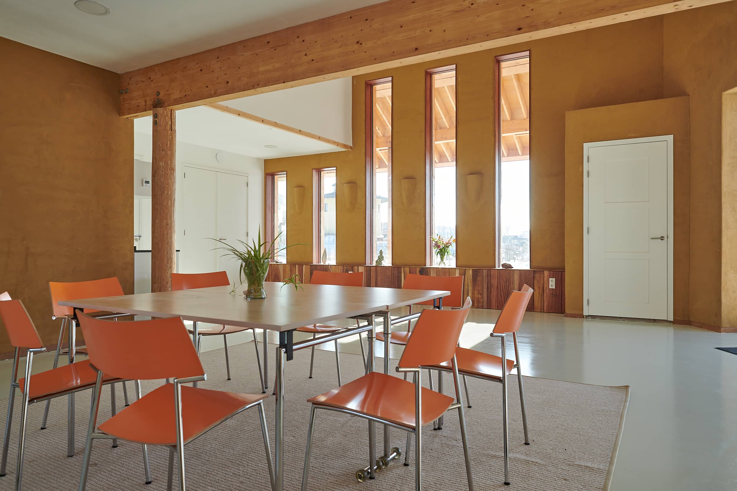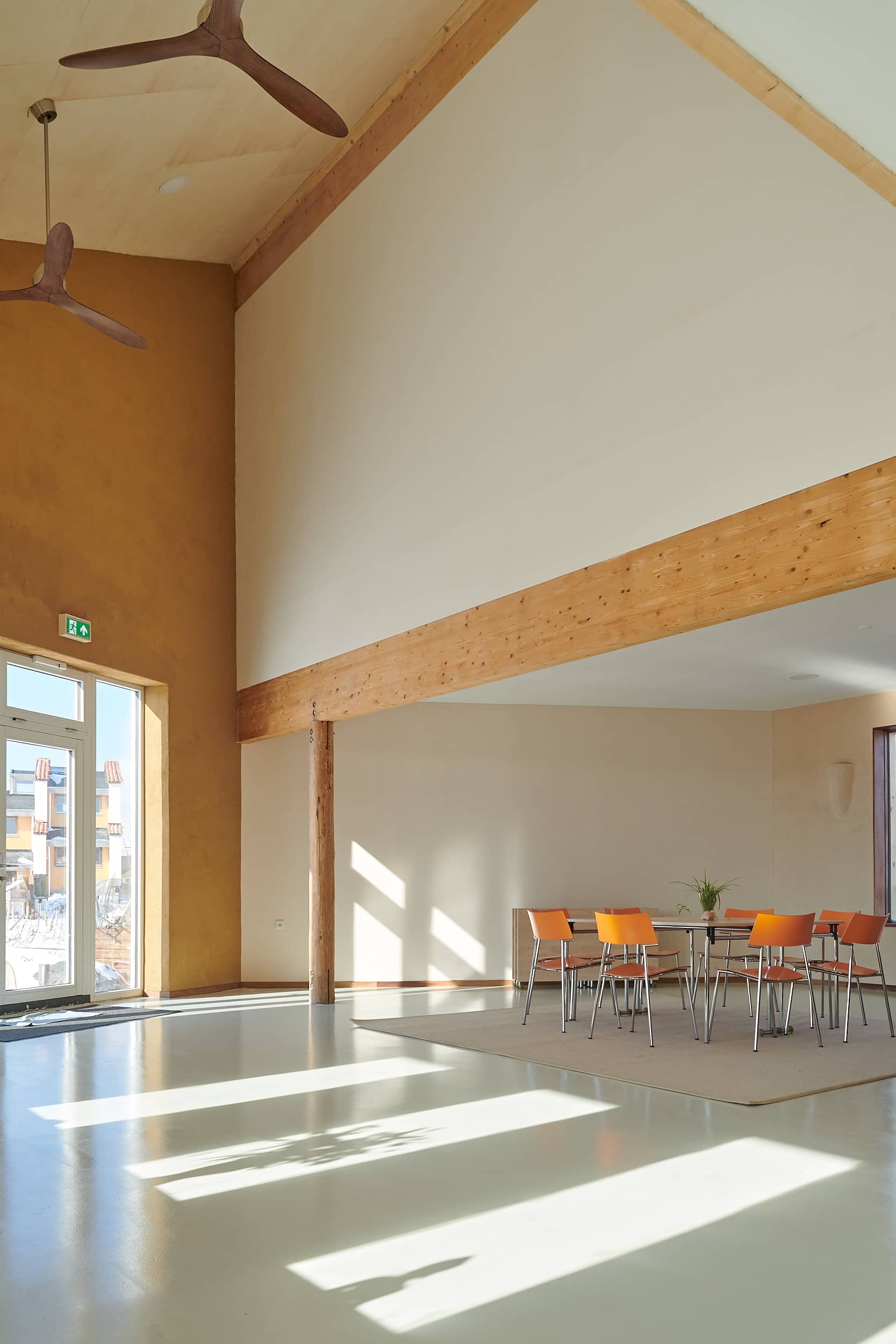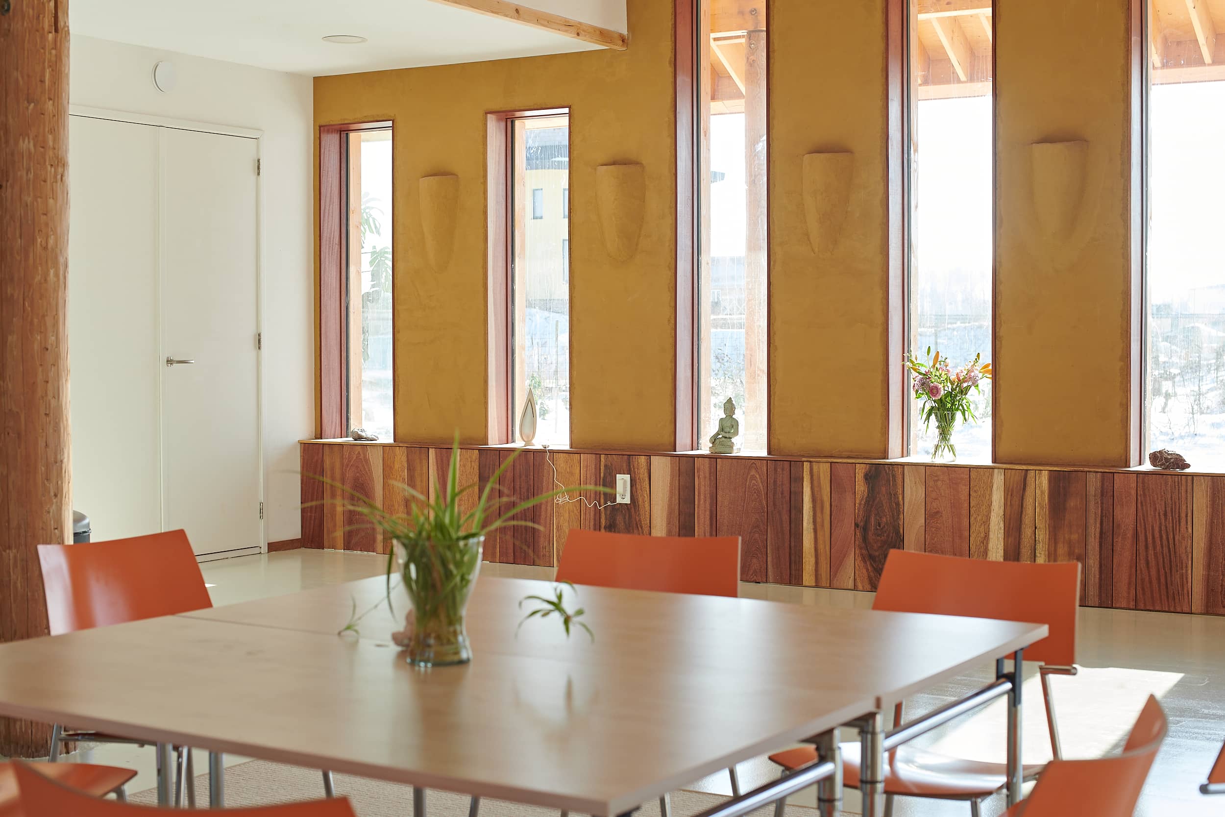 Onze sfeervolle zaal (70 m²) is ideaal voor workshops, vergaderingen, yogalessen of bijeenkomsten. De ruimte ademt rust en natuur en is volledig ecologisch gebouwd.